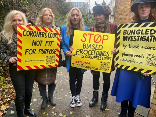And it is not the first time she has silenced a bereaved relative. Lady Dorit Young was similarly treated over the death of her only daughter, Gaia. That is why there was a small demonstration outside the coroner’s court whereby Lady Young and her supporters and Lorna combined to protest. You can read about their case on https://truthforgaia.com/ and an earlier blog by me here.