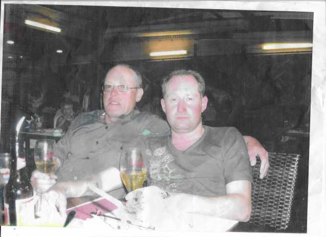 Happier times. Matthew Reynolds (right) enjoying a drink with his late dad, Howard, before his horrendous accident
