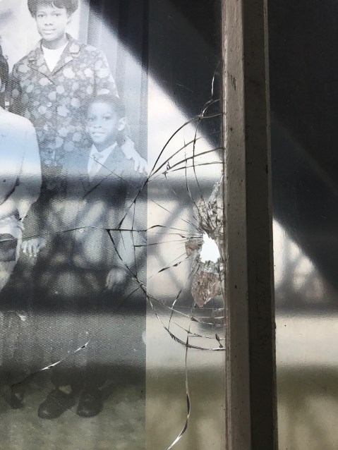 A damaged exhibit Pic credit: EvewrightWindrush exhibition: Another Exhibit smashed. pic credit; Evewright