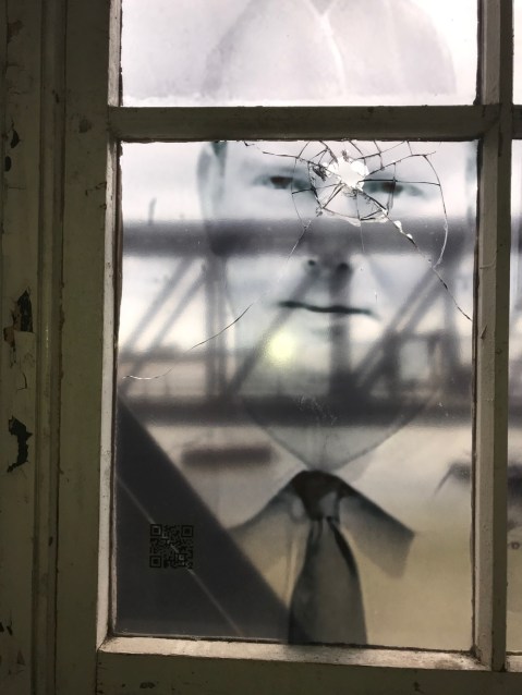 It is an immersive visual art experience, installed on 432 panes of glass collaged with photographs, documents, original boat passenger tickets and memorabilia. The artwork is installed in an original passenger walkway 55 metres long. As you walk through, you can listen to audio stories about the lives of some of the elders whose images are featured in the installation. See http://www.evewrightarts.org