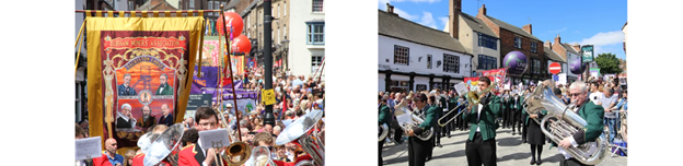 The film itself interweaves the past and present with split screen and colour and black and white clips contrasts the old celebrations with the new. It has clips of Prime Ministers like Clement Atlee and Harold Wilson addressing the meeting from the balcony of the Durham County Hotel when the National Union of Mineworkers was a major force in the land to today’s political participants including a video from presidential hopeful Bernie Sanders in the States to Jeremy Corbyn, the current Labour leader.