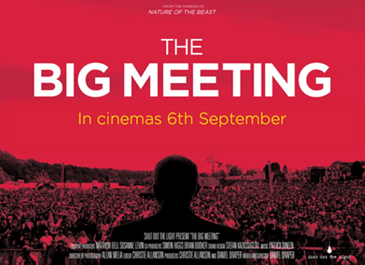 The BIG MEETING. On release from September 6 and shown first in South Shields, Newcastle, Glasgow, Durham and Halifax. It is produced by the independent Shut Out The Light company